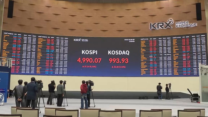 코스피 4,990선 마감 사상 최고치…천스닥 눈앞