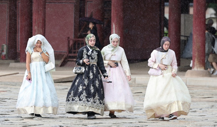 옷고름도 없는 시스루가 한복이라고?…경복궁 누비는 짝퉁의복들
