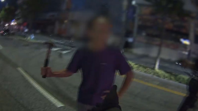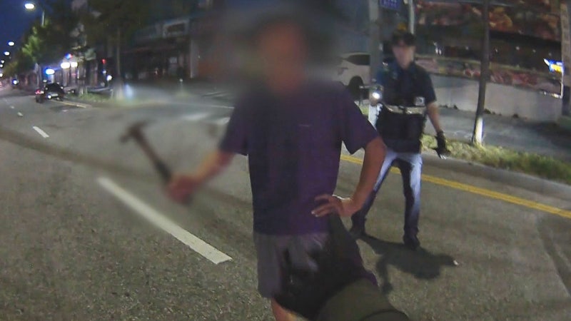 도로 한복판서 망치 들고 '휙휙'…"나 보호하는 거야"