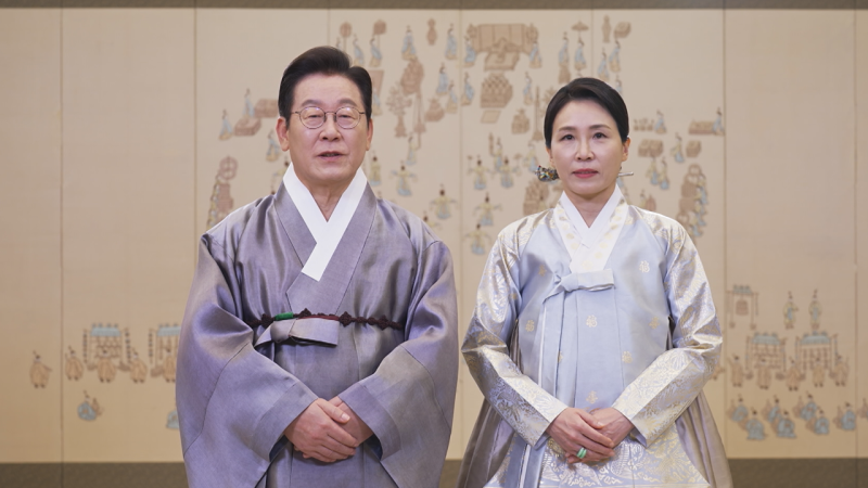 이 대통령 부부, 한복 입고 대국민 추석 인사…"국정에 최선 다할 것"