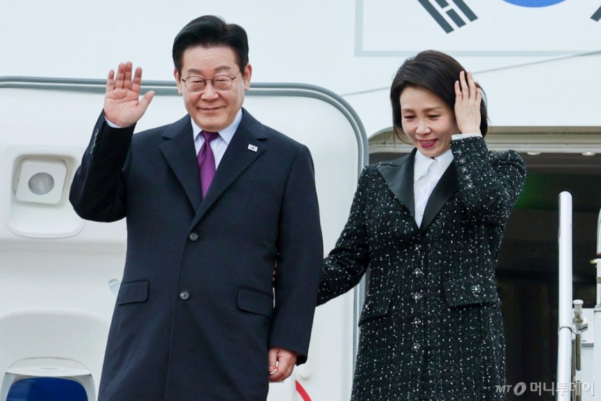 이재명 대통령, 日간사이공항 도착…강풍 속 김혜경 여사와 '팔짱'